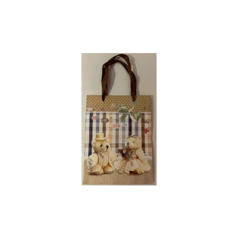 1 kép Dísztasak/ajándéktasak glitteres macik sárga ruhában szalagfüllel 18x23x9 cm UTOLSÓ DARABOK