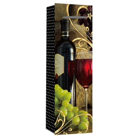 Dísztasak boros 12x36 cm vörösbor és fehér szőlő 12 x 36 cm-es boros dísztasak anyag: 210 g/m2 súlyú papír formátum: álló felület: matt fogantyú: szalag