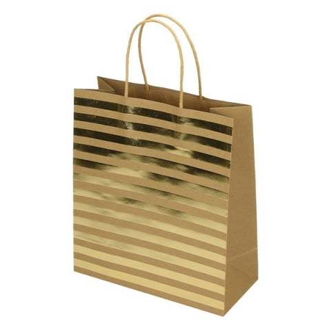 2 kép - Dísztasak ECO Classic Plus M 22x25x10 cm barna fóliás arany csíkos-pöttyös