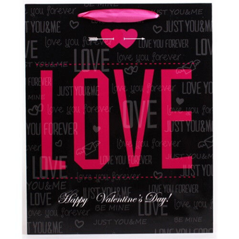 1 kép Dísztasak fényes 18x23 cm fekete/piros love