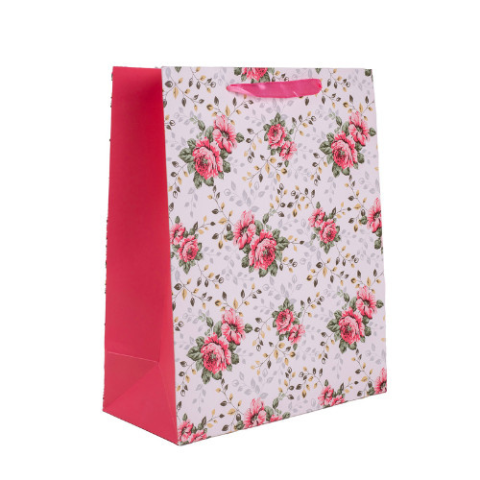 Dísztasak matt 11x14 cm rózsa levelekkel 11x14 cm méretű dísztasak anyag: 210 g/m2 súlyú papír formátum: álló felület: matt szalag füles