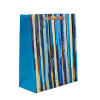 Dísztasak matt 18x23 cm kék/arany csíkos 18x23 cm-es méretű dísztasak anyag: 210 g/ m2 súlyú papír formátum: álló felület: matt szalag füles