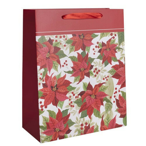 Mikulásvirágos matt dísztasak - Tökéletes ajándékcsomagolás karácsonyra! 🎁 Ez a 18x23 cm-es matt dísztasak ideális választás karácsonyi ajándékok stílusos és ünnepi csomagolásához. A gyönyörű mikulásvirág minta igazán különlegessé teszi! Főbb jellemz...