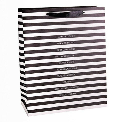 Dísztasak matt 26x32 cm fekete-fehér csíkos ajándéktasak 1 kép