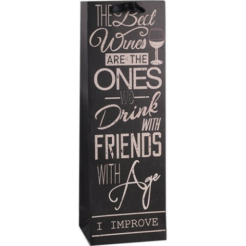 "Wine we drink" matt boros dísztasak - Stílusos kiegészítő borosüvegekhez 🍷 Ez a matt felületű boros dísztasak tökéletes választás, ha egy üveg bort szeretnél elegánsan átadni. A "Wine we drink" felirat stílusos megjelenést kölcsö...