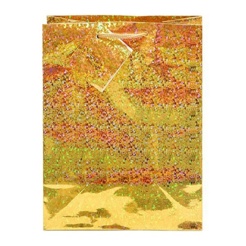 Papír ajándék dísztasak, speciális hologrammal, sodrott füllel.