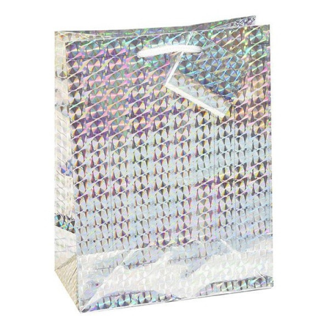 2 kép - Dísztasak Special hologram M 18x23x10 cm egyszínű ezüst sodort füles