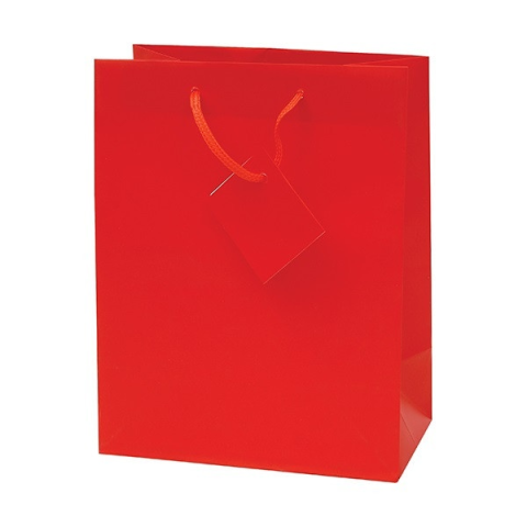 Ajándéktasak, M 18 x 23 x 10 cm méretben, piros színben, zsinór füles ajándék kísérővel.