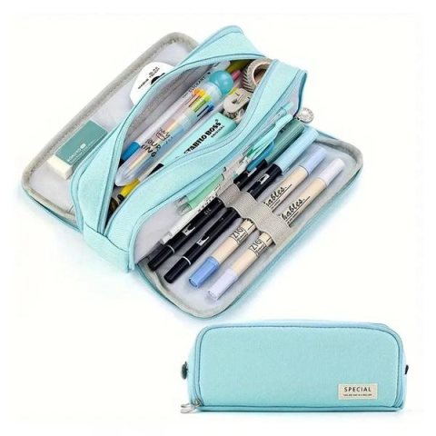 Divatos Többrétegű Dupla rekeszes Tolltartó, Ciánkék DK1514948-C