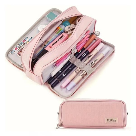 Divatos Többrétegű Dupla rekeszes Tolltartó, Pink DK1514948-P