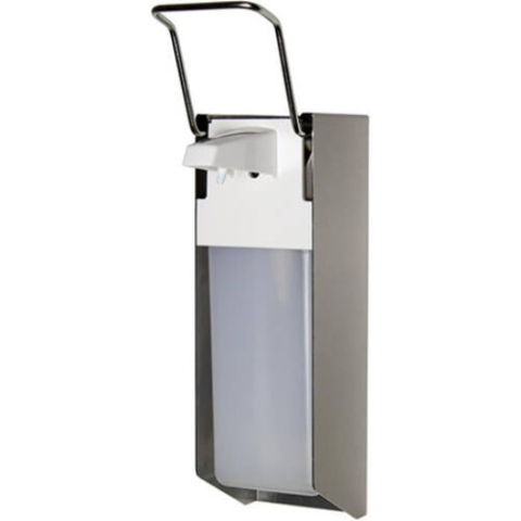 - CE minősítés.Fertőtlenítő-, szappanadagoló, könyökkel üzemeltethető, rozsdamentes acél, 1000ml.