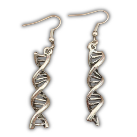 Ezüst színű DNS spirál fülbevaló, különleges és modern kiegészítő. Egyedi design, amely tökéletes tudósoknak és különlegességet kedvelőknek