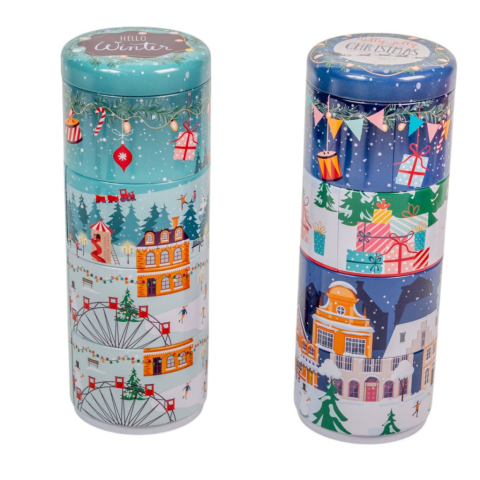 Doboz karácsonyi mintával henger 4 részes D8,5x22,5cm