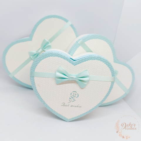 Méret: 21,5x19x9 cm, 18,5x17x7 cm, 15,5x14x6 cm Szín: menta Anyag: papír Tömeg: 312 gramm A szett 3 db különböző méretű dobozt tartalmaz. Papír doboz asztali dekorációkhoz, ajándékokhoz, virágokhoz! Rózsaboxokhoz kiváló választás!