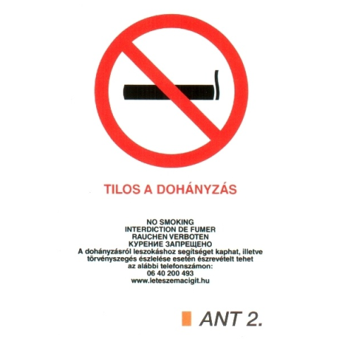 1 kép Dohányozni tilos matrica, 4 nyelvű, ANTSZ és Korm. rendelet alapján ant2