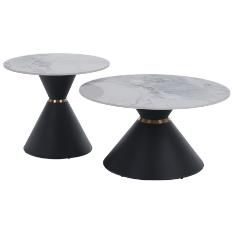 Teljes Dohányzóasztalok, 2 db-os szett, fehér márvány/fekete/arany, acél, MABUZ termékleírás