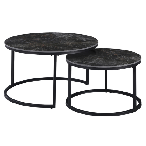 Dohányzóasztalok, 2 db-os szett, fekete márvány/fekete acél, LASTRO bútor termékleírás