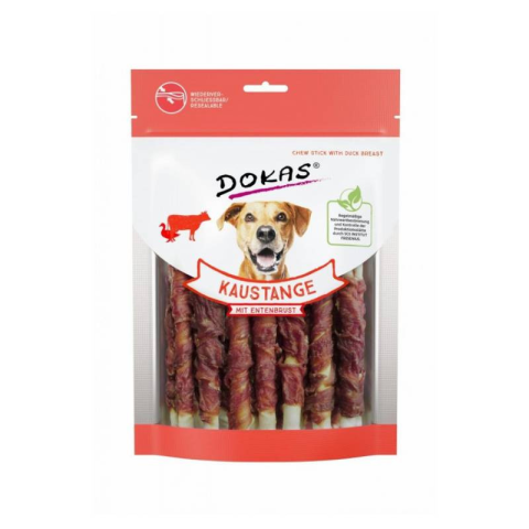 Dokas rágórúd szárított kacsamellel 200gr Dokas rágórúd szárított kacsamellel visszazárható tasakban. Csirkementes. Dokas rágórúd szárított kacsamellel visszazárható tasakban. Csirkementes. Összetétel: marhabőr 55,0%, kacsamell filé 42,0%, növén