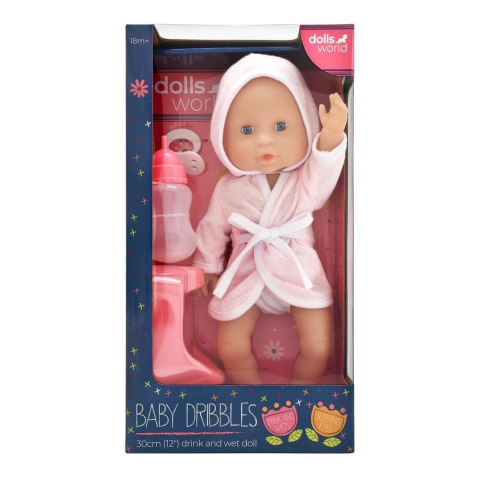 Dolls World baba fürdőköpenyben egy aranyos és praktikus játékbaba, amelyet a kisgyermekek számára terveztek, hogy élvezhessék a szerepjátékot és a babázást.A baba 30 cm magas, ami ideális méret a kisgyermekek kezébe, így könnyen hordozható és kezelhető.