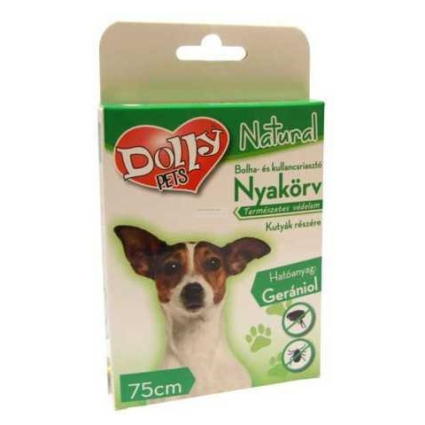 Dolly Natural Bolha és kullancsriasztó nyakörv kutyák részére kék 75cm Dolly Natural bolha- és kullancsriasztó nyakörv kutyák részére Biocid terméktípus, termékforma: 19. terméktípus, riasztó hatású nyakörv. Hatóanyag: Gerániol 1,7 g/100 g (CAS szám: