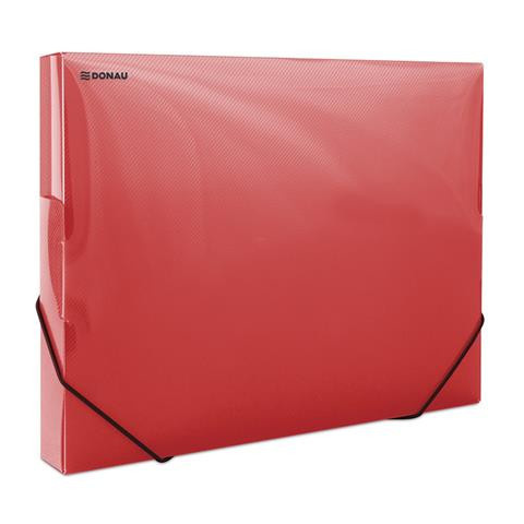 Gumis mappa, 30 mm, PP, A4, DONAU, áttetsző piros - A4 méretű dokumentumok tárolására alkalmas - erős, strapabíró PP anyagból (700 mikron) - a behelyezett dokumentumok lyukasztást nem igényelnek - a külső sarkoknál elhelyezett gumiszalaggal zárható