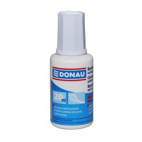 Hibajavító folyadék, oldószeres, 20 ml, DONAU - ecsetes kenőfej - folyékony, kiváló fedőképesség - könnyen kezelhető - gyorsan szárad - oldószeres - kiszerelés: 20 ml Gyártó/első EU forgalmazó elérhetősége: PBS Connect Polska Sp. z o.o. Okólna