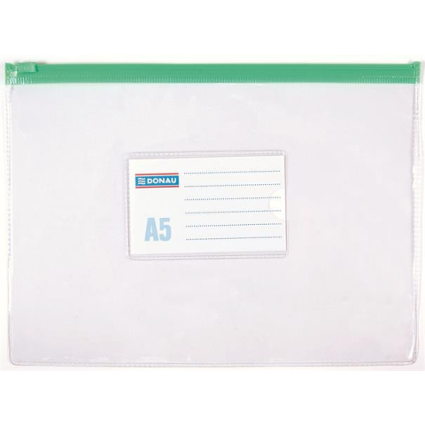 Rendszerező tasak, A5, PVC, simítózáras, DONAU - A5 méretű dokumentumok és kisebb kiegészítők (toll, számológép, jegyzetek) tárolására - erős PVC alapanyag - a simítózárnak köszönhetően az iratok nem sérülnek és nem vesznek el - vegyes színben (kék, zö