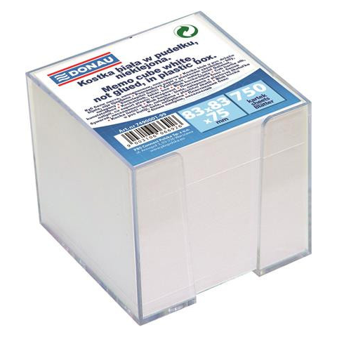 Kockatömb, 83x83x75 mm, adagolóval, DONAU Jegyzetre fel! -üzenethagyásra, feljegyzésekhez az irodában és otthon -83x83 mm fehér jegyzetlapok áttetsző, műanyag adagolóban -750 lap/tömb (nem ragasztott) -utántölthető: D8309 Gyártó/első EU forgalmazó e