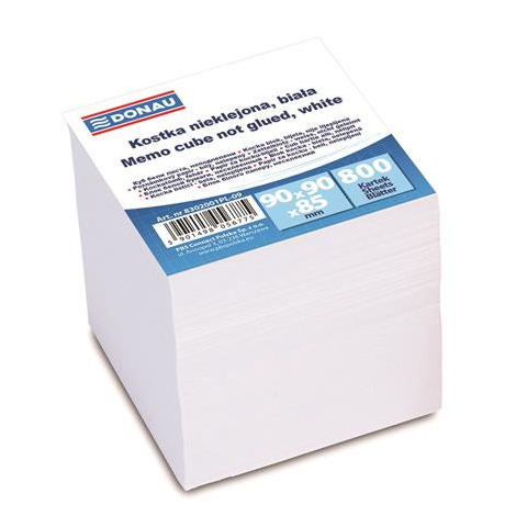 Kockatömb, utántöltő, 90x90x85 mm, DONAU Jegyzetre fel! -üzenethagyásra, feljegyzésekhez az irodában és otthon - 90x90 mm fehér jegyzetlapok -800 lap/tömb (nem ragasztott) -használható önállóan vagy papíradagoló utántöltésére (D749209) Gyártó/első EU