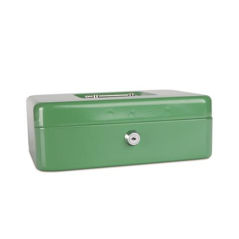Pénzkazetta, 25x18x9 cm, DONAU, zöld - érmetartó tálcával - lekerekített sarkok - fém burkolat - 2 db kulcs mellékelve Gyártó/első EU forgalmazó elérhetősége: PBS Connect Polska Sp. z o.o. Okólna 45 Street, PL 05270 Marki kontakt@pbspolska.eu