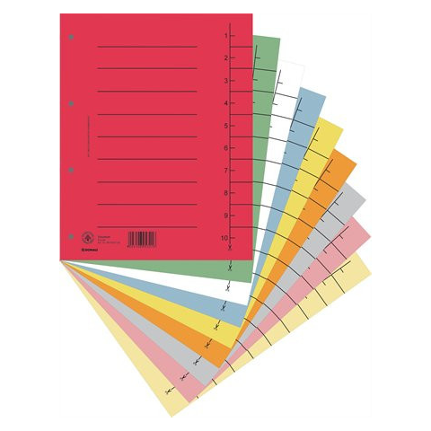 Regiszter, karton, A4, DONAU, vegyes színek - lefűzött dokumentumok kategorizálására - színes elválasztólapok - újrahasznosított, 250 g/m2 kartonból készült - 100 db/csomag - 4 lefűzőlyuk - méret: 235x300 mm Gyártó/első EU forgalmazó elérhetősége: PBS