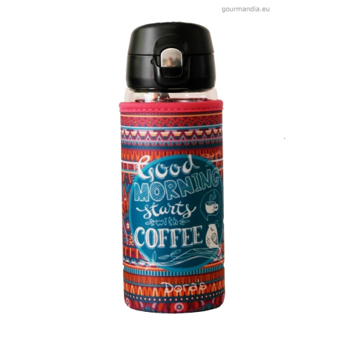 1 kép Doras Kávés és teás üvegkulacs (üvegpalack), neoprén huzattal, egykezes kupakkal