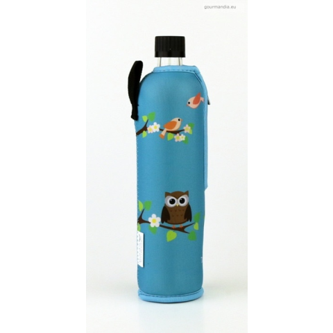 1 kép DORAS Üvegkulacs világoskék színű, bagoly mintás neoprén huzattal