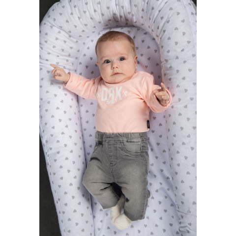 DRK mintával nyomott hosszú ujjú baba body Egy igazán vagány DRK felirattal hívja fel magára a figyelmet ez a baba body. A kisbabák komfortját szem előtt tartva készült, ennek megfelelően 100% pamutból szabták, ami puha, szín- és formatartó, emellett tök
