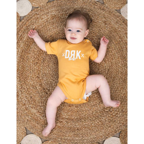 Dorko DRK mintával nyomott rövid ujjú baba body Egy igazán vagány DRK felirattal hívja fel magára a figyelmet ez a baba body. A kisbabák komfortját szem előtt tartva készült, ennek megfelelően 100% pamutból szabták, ami puha, szín- és formatartó, emellet