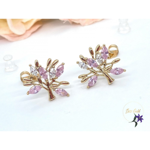 1 kép Dorotti antiallergén fa alakú köves fülbevaló 18K - rózsaszín
