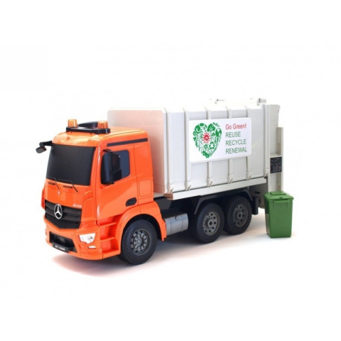 RC kukásautó minden funkcióval Ez a távirányítós modell a Mercedes Arocs kukásautó pontos mása. A jármű irányítható előre, hátra, jobbra és balra, ráadásul az igazi munkagép funkcióit is tudja, tehát felemeli és üríti a kukát, utána pedig a teljes tartály üríthető. Ezen kívül a lámpák is világítanak és hangokat is kiad, demo módban pedig bemutatja a tudását. Ha huzamosabb ideig nem kap parancsot, akkor kikapcsol, ezzel elkerülve, hogy idő előtt leme