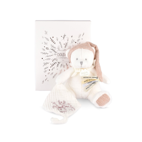 1 kép Doudou Darčeková sada Plyšový medvedík s čiapočkou a dečkou ružový