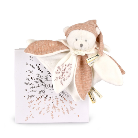 1 kép Doudou Darčeková sada Plyšový muchláčik medvedík s čiapočkou 25 cm ružový