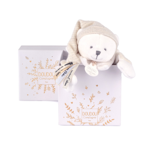 1 kép Doudou Darčeková sada Plyšový muchláčik medvedík s čiapočkou béžový