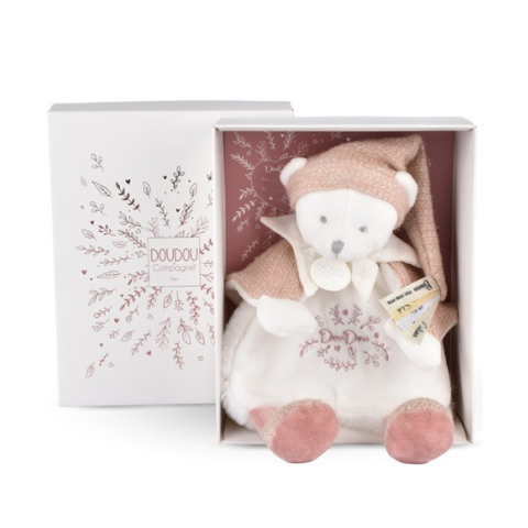 1 kép Doudou Darčeková sada Plyšový muchláčik medvedík s čiapočkou ružový