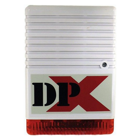 Szabotázsvédett, akkumulátoros kültéri hang- és fényjelző A DPX128 egy akkumulátoros sziréna a behatolásjelzők kiegészítésére. A hangjelzés mellett fényjelzést is ad, mely külön is vezérelhető bekötéstől függően. A hang- és fényjelző jellemzői Dupla védelem, műanyag burkolat (3 mm) és fém belső ház (0,8 mm) Váltakozó hangjelzés riasztás alkalmával Szabotázsvédelem (állítható a kapcsolónál NO / NC, csúszósarus) Pozitív és negatív ind
