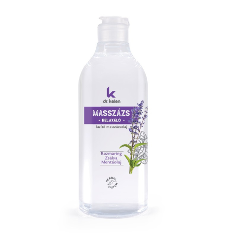 Dr. Kelen Relaxáló Masszázsolaj Dr. Kelen Relaxáló Masszázsolaj Relaxáló, regeneráló hatásának köszönhetően a napi stressz okozta feszültséget, fáradtságot csökkenti, a frissesség, kiegyensúlyozottság érzetét biztosítja. Rozmaring-, zsálya-, mentaolaj