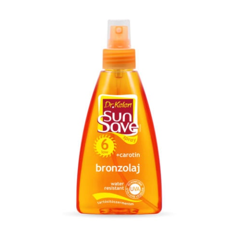 Dr. Kelen brozolaj Dr. Kelen Sunsave F6 Bronzolaj spray -150 ml Alacsony fényvédő hatású napolaj, pumpás spray kiszereleésbenvásárolható. Használata gyors barnulást és bronzosan csillogó bőrt biztosít. Könnyen felvihető és pótolja a bőr zsírveszteségét. B