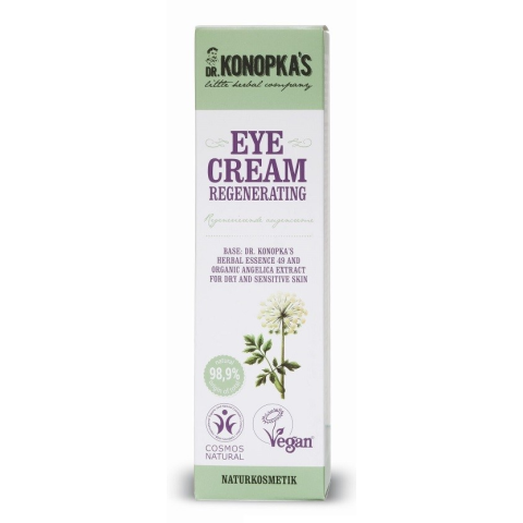 Dr. Konopka 49. számú speciális gyógynövény-eszenciáját tartalmazza. A vitaminokban és ásványi anyagokban gazdag összetevők egyedi komplexuma táplálja és regenerálja a szem körüli érzékeny bőrt. Az angyalgyökér-kivonat segít lelassítani a bőr természetes