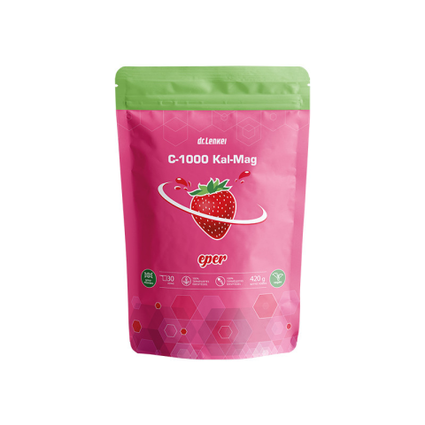 Dr. Lenkei C-1000 Kal-Mag C-vitamin, kalcium- és magnéziumtartalmú italpor édesítőszerekkel, eperízű étrend-kiegészítő, 30 adag Kalciumot és magnéziumot szerves formában és ideális 2:1 arányban tartalmazó italpor, természetes eper ízesítéssel. Biztosítja