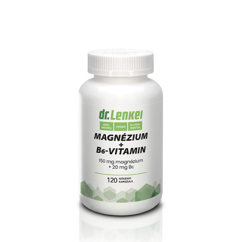 Dr. Lenkei Magnézium B6 kapszula, étrend-kiegészítő, 120 db VEGÁN. GMO-MENTES. TEJMENTES. GLUTÉNMENTES. SZÓJAMENTES. Magnéziumot és a B6-vitamint tartalmazó kombináció, amely segít a fáradtság és a kifáradás leküzdésében. Javasolt napi adag: 1 kapszula.
