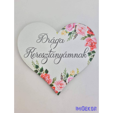 Drága keresztanyámnak virágos tábla 7x7,7cm - szív dekorációs kellék árgrafikon