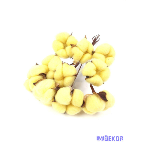 Drótos szárú gyapot 10db 5-6 cm fej - Sárga dekorációs kellék 1 kép