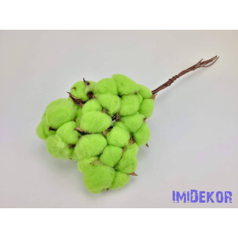 Drótos szárú gyapot 10db 5-6 cm fej - Világos Zöld dekorációs kellék 1 kép
